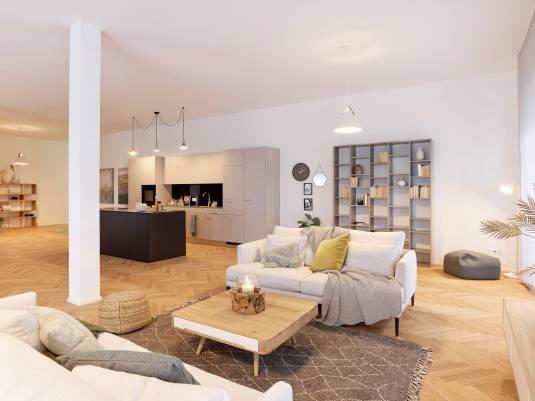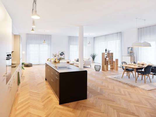 Diese wunderschöne Loft-Wohnung hat eine Wohnfläche von 152.5 m2 und bietet ein separates Schlafzimmer. Mit einem Balkon, ausgerichtet nach Nord-Westen, geniesst man in dieser Wohnung sonnige Abendstunden. Die Materialisierung ist hochwertig und modern.