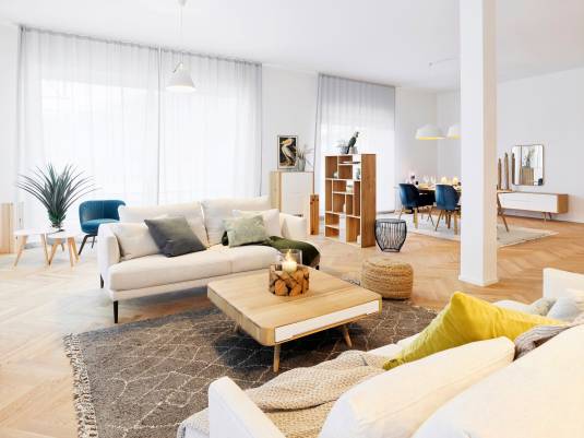 Das Gebäude A bietet weitere Lofts oder Loft-ähnliche Mietwohnungen im ähnlichen Stil. 6 dieser Wohnungen sind besonders exklusiv, denn jede einzelne ist mit wunderschönen, farbig gemusterten Bodenplatten ausgestattet. Mehr dazu unter Pinar Miro.